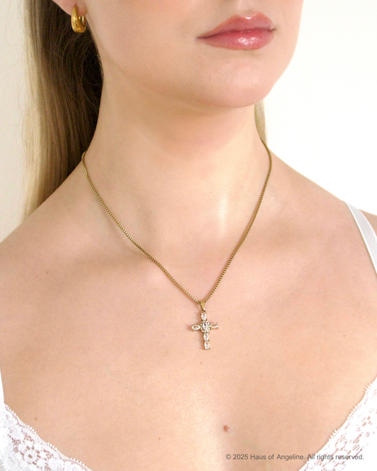 Small CZ Cross Necklace in Gold