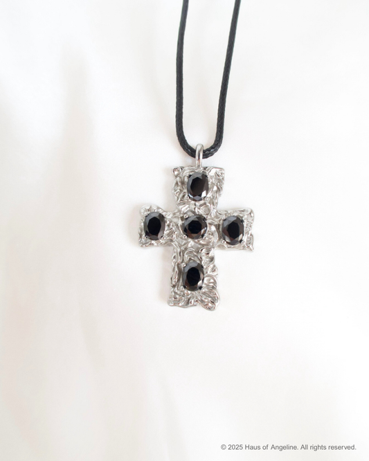 Siren's Kiss Black Stone Cross Necklace